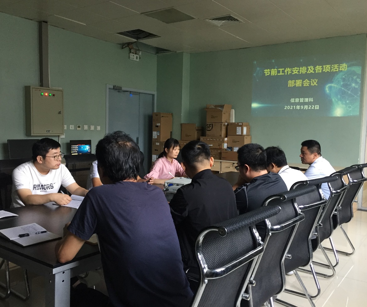 为转变科室人员工作作风、做好信息安全保障工作,确保“十一”假期信息系统平稳运行,9月22日,信息管理科召开节前工作安排部署会议,明确工作任务,强化责任落实。