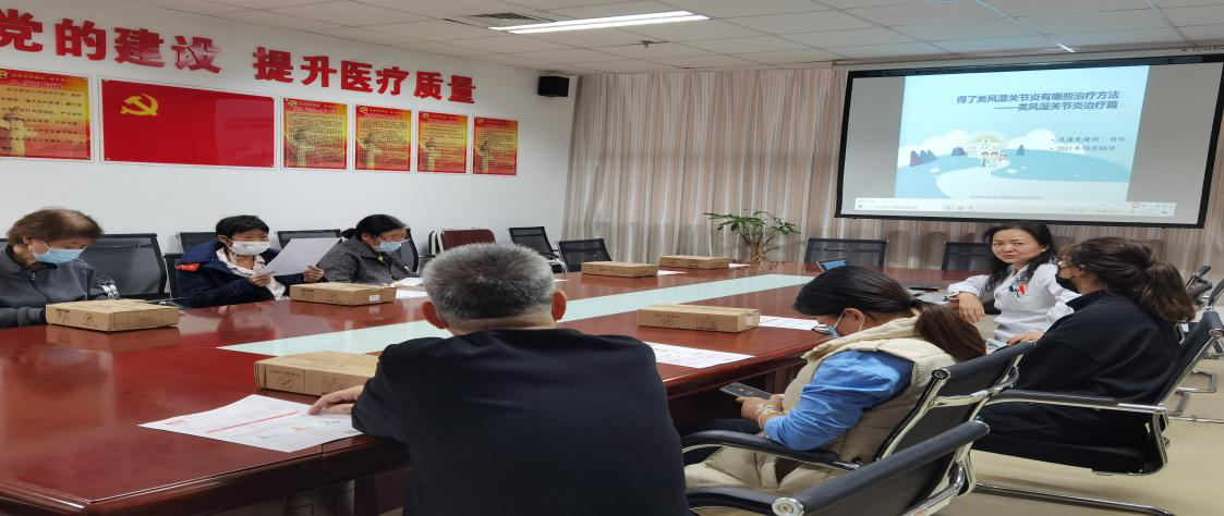为普及类风湿性关节炎的防治知识,帮助患者走出误区,做到及时发现,及时干预,树立正确的防治观念,10月26日下午,江南在线体育风湿免疫科组织风湿系列讲座及病患教育大讲堂---类风湿性关节炎治疗篇。风湿免疫科部分住院患者及部分门诊患者10余人参加。