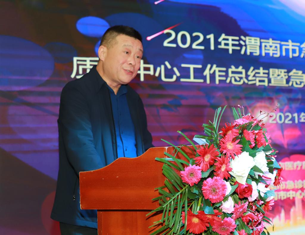 会议由市中心医院急诊科主任范华杰主持。市卫健委副主任徐萌新、陕西省急诊质量控制中心主任裴红红、市中心医院主管领导焦建雄参会并分别致辞。