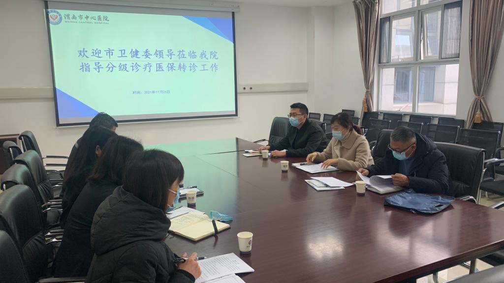 11月26日上午,市卫健委地病办主任杜晓莹、体制改革和科教宣传科科长王小韦、科员周兵莅临江南在线体育,对医院分级诊疗及医保转诊政策落实情况和存在问题进行调研。分级诊疗办公室、医保科、外联办以及120急救中心负责人参加座谈。