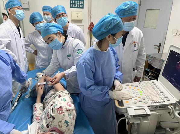 患者女性,13岁,因间断眩晕1年,加重伴头痛20余天就诊于医院全科医学科。住院期间,行经胸超声右心声学造影提示存在心内分流,为进一步明确心脏疾病,行经食管超声心动图检查。检查前,超声科杨玉萍医师对患者充分评估,与刘晓晖主任共同商定患者检查方案,进行充分准备。为保障小患者安全,全科医学科副主任医师苗娟妮、心脏外科副主任姜永红及团队全程参与。在多名医护人员的通力协作下,成功为患者行经食管超声检查。检查过程顺利,患者无不良反应,最终明确超声诊断,为患者进一步治疗提供了有力依据。