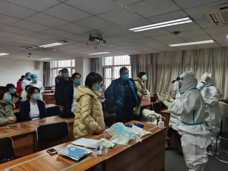 作为负责全院感染防控工作的控感科,是疫情防控的重要关口,疫情防控以来科室全员进入备战状态,立即投入到疫情防控工作中。控感科根据国家出台的相关指南,结合医院实际,先后制定了《新冠疫情防控医院感染管理要求》《PCR基因检测室医院感染管理制度》《发热门诊、PCR实验室等高风险岗位工作人员闭环管理院感防控相关要求》《现阶段各岗位疫情防控工作要求》等多项规范和措施,并进行全员培训,对医护人员个人防护用品穿戴操作技能进行现场演示。战“疫”当前,控感科所有人都深知“病毒”无孔不入,稍有疏忽,都有可能带来严重后果,必须深入到医院各个区域进行防控督导,扣牢每一个环节,抓好每一个细节,不放过每一处角落。