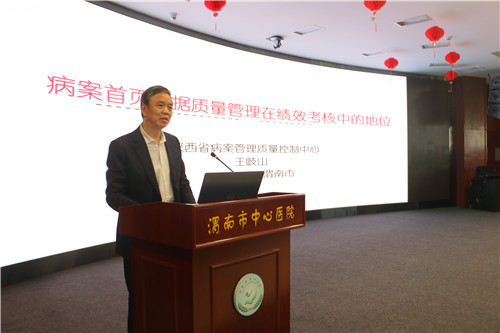 渭南市病案质量控制中心主委、江南在线体育质控科主任李新选做2019年病案质量控制中心工作汇报。他首先对渭南市病案质量控制中心2019年的工作情况作了总结汇报,其次对江南在线体育病案质量控制所做的工作及现状作了汇报。