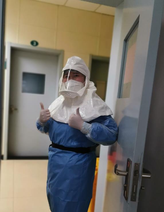 下午4点,陆续有接班的人来。“咦,姐,你怎么在这?” “我是领导派来陪你们的,同时看你们有没有严格消毒处理哦。”我笑着说到。“来,我帮你系带子,衣服全遮盖住,防护帽消毒好了,我帮你打开电源,鞋套破了,赶紧再套一个......”就这样我上岗了。