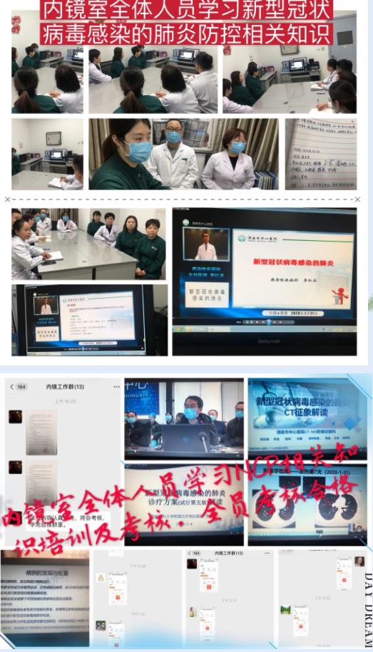 內镜中心全体人员责无旁贷、义无反顾。在王莹副主任的带领下,大家纷纷请战,向医院提交请战书,志愿深入防控第一线,到最危险、最需要的地方去。除夕之夜,内镜中心护士崔盾接到医院通知,到急诊科发热门诊支援。崔盾放下正在吃年夜饭的筷子十几分钟内就赶到医院完成集结,站到了防控最前沿,不愧是最帅的逆行者。