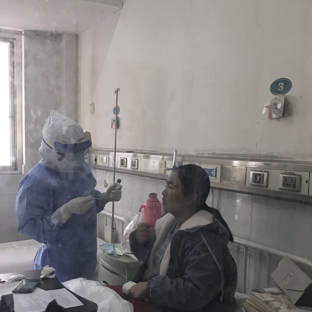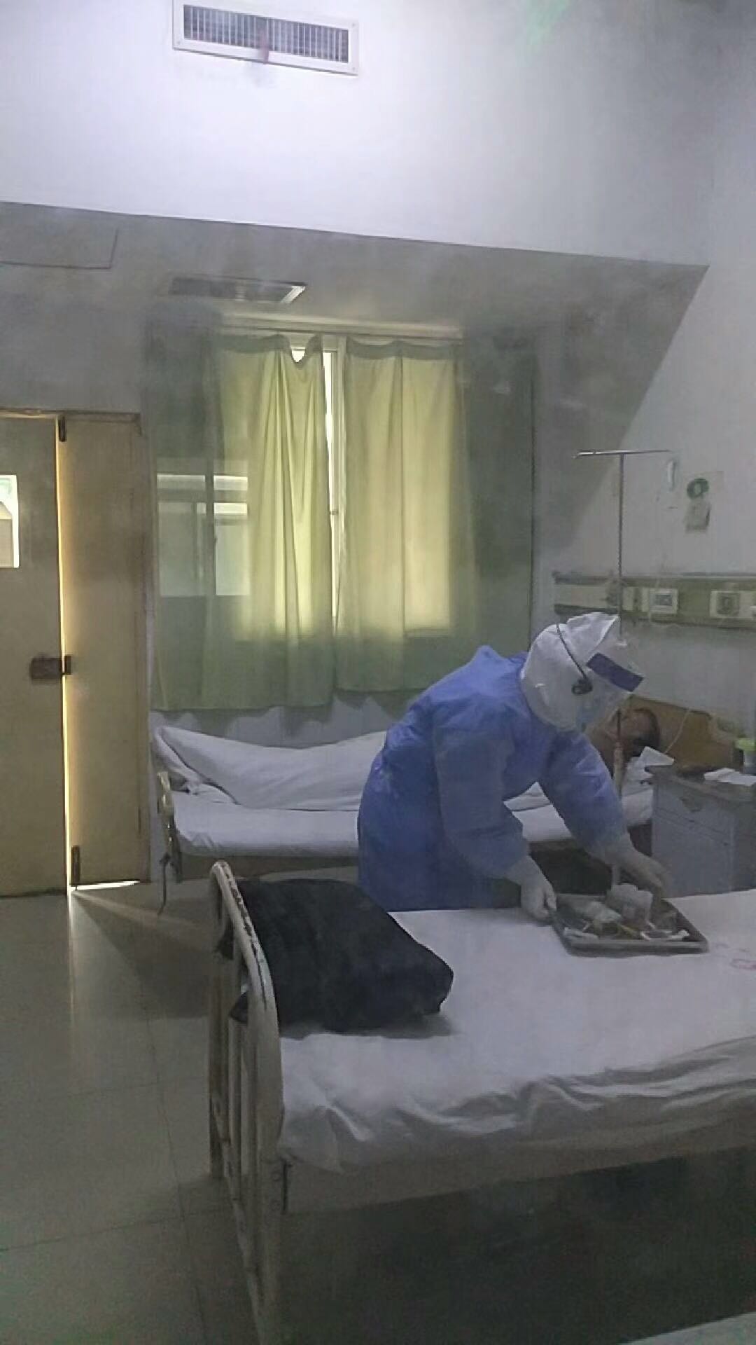 从穿上厚厚的防护衣进入离病房就开始一天的工作。我们梭于病房中,除了为患者做好必要治疗和护理,还要为患者打水、送饭、打扫病房和卫生间、做好消毒,为心情郁闷的患者进行心理疏导。尤其是刚刚被确诊的新冠患者,他们的情绪一开始都很抵触,不能接受自己是确诊患者这个事实,不配合治疗,这时就要理解他们,寄予更多的关爱和耐心。慢慢地,他们开始讲话,有了交流的眼神,也开始配合治疗,这时会让他们听一些舒缓心情的音乐,为他们写下鼓励的纸条,指导他们多下床活动增强抵抗力……其实我们的工作就是这样普通,总是在安慰,常常在鼓励。
