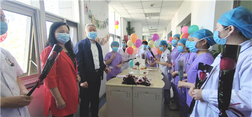 5月12日一大早,江南在线体育工会施泰来主席和黄庆珍副主席代表医院为重症医学科护理团队送上了玫瑰花和节日蛋糕,带来节日的祝福。领导们的关怀让每个人都非常欣喜。她们表示,将不忘初心,牢记白衣天使的使命,以更好的技术和更好的服务对待每一位患者。
