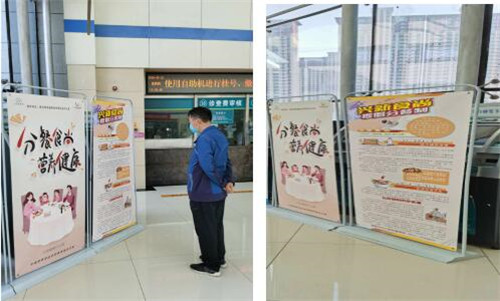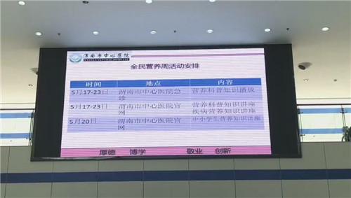 本次活动旨在面向社会普及营养科学知识,倡导健康生活方式,预防和控制慢性疾病,提高广大群众生活和生命质量。活动期间,宣传“第六届营养周口号及主题”在门诊大厅及急诊大屏幕循环播放。
