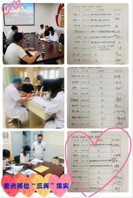 “三再”要求不仅适用于疫情防控,也适用于医疗管理的各个环节。按照“三再”管理思维,焦建雄副院长带领医疗组以精细化管理为目标、以核心制度落实为基础、以重点学科建设为核心、以月医疗质量巡查为抓手,全面梳理医疗管理的薄弱环节及存在问题,制订了医院常态化疫情防控下医疗质量管理与持续改进方案、重点部门医疗质量管理方案,并逐步落实。医疗质量月巡查做到检查前计划周到、检查时重点明确、检查后反馈细致;发现问题穷追不舍,以问题为导向,组织多学科讨论,从基础和环节医疗质量分别深入分析原因,制定整改方案,持续跟踪改进效果,形成闭环管理。目前,在常态化疫情防控状态下,医院胸痛中心建设工作也在加大步伐,严格按照建设标准和计划时间节点有序高效推进每一项工作;卒中中心、重点专科建设、部分学科质控中心成立……已纳入议事日程,周密计划,有序推进。