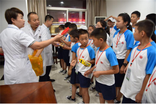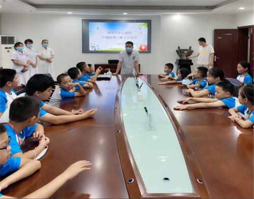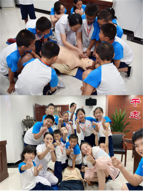 护士周琳为孩子们演示了心肺复苏操作流程,操作环节孩子们热情高涨、积极参与,培训人员耐心指导,让孩子们了解到更多的急救知识。