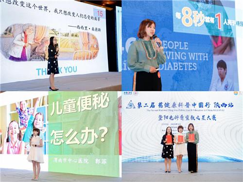 郭菲药师以《儿童便秘怎么办?》为科普主题,针对儿童便秘的诊断、饮食调整、药物治疗等内容,通过儿科药师与孩子母亲的双重身份与现场观众朋友们进行了互动式讨论,纠正了治疗便秘的误区,强调了药物治疗的规范性,语言诙谐幽默,内容通俗易懂,赢得了评委认可并引起了现场观众的共鸣。