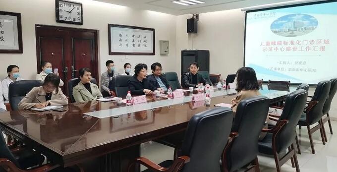 儿科贺双忍主任从科室布局、人力资源、教学、科研、儿童哮喘门诊发展历程、儿童哮喘标准化门诊区域示范中心基础设施、儿童哮喘诊疗、管理、宣教及推广等方面进行详尽汇报。